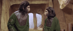 Una tripulación de astronautas se estrelló en un planeta en un futuro lejano donde los simios parlantes inteligentes son la especie dominante, y los humanos son los oprimidos y esclavos.